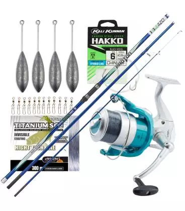 Por menos de 70€ puedes encontrar todo un kit de pesca con buenas prestaciones para pescas esporádicas o iniciación en la pesca surfcasting o pesca en el mar.