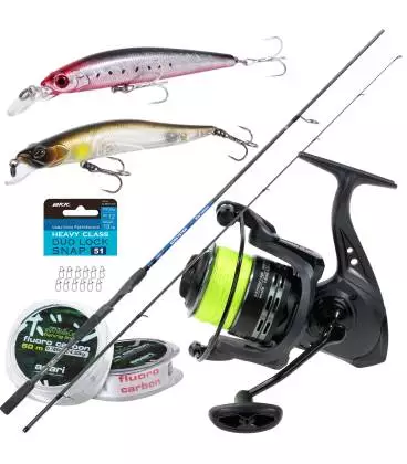 Por menos de 85€ puedes obtener un buen kit de pesca spinning para iniciación y tecnificación. Con un material de una gama media, de buenas prestaciones y todo completo e incluído.